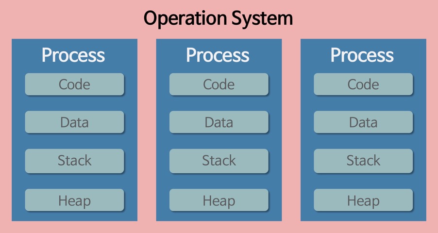 이러한 프로세스는 별도의 주소 공간에서 실행되며, 한 프로세스는 다른 프로세스의 자원 영역에 접근할 수 없다. 만약 한 프로세스가 다른 프로세스의 자원에 접근하려면 프로세스 간의 통신(IPC)을 사용해야한다. (파이프, 파일, 소켓 등)