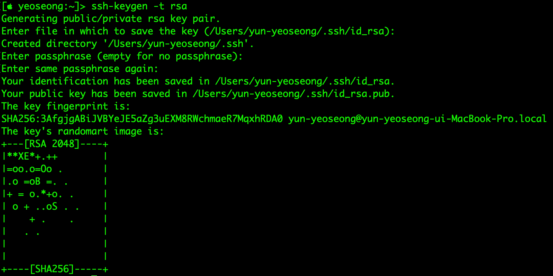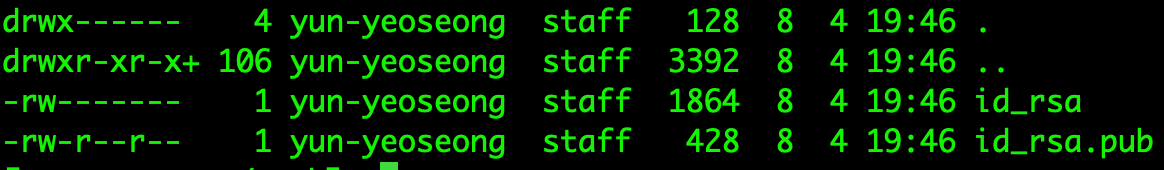 모두 3번의 엔터를 치고 키를 생성하였습니다. 첫번째 엔터는 키 파일을 만들겠냐, 두번째,세번째는 키파일의 암호를 만들어주는 것인데 필자는 따로 암호를 만들지 않을 것임으로 모두 엔터를 쳐 넘어갔습니다.