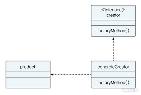 다시 쉽게 정리하면 특정 클래스에서 사용할 클래스를 직접 new로 생성하면 강한 결합이 생기게 된다. 즉, 무엇인가 전략이 바뀔때마다 코드의 변경이 생기게 된다. 여기서 핵심은 사용할 인스턴스를 생성하는 코드를 특정 클래스가 생성하도록 함으로써 클래스 간의 결합도를 낮추게 된다는 것이다. 위의 그림에서 전략은 Product로 볼 수 있고, concreteCreator가 적절한 Product를 생성하는 역할을 담당하게 된다.