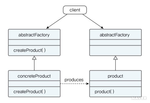 abstract factory는 '추상적인 공장'이란 뜻으로, 밑의 그림과 같이 여러 개의 concrete Product를 추상화시킨 것이다. 따라서 구체적인 구현은 concrete Product 클래스에서 이루어진다. abstract factory에서는 사용자에게 인터페이스(API)를 제공하고, 인터페이스만 사용해서 부품을 조립하여 만든다. 즉 추상적인 부품을 조합해서 추상적인 제품을 만든다.
