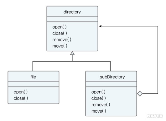 완벽한 구현은 아니지만 파일 시스템을 컴포지트 패턴으로 구현 가능하다라는 정도만 알자!