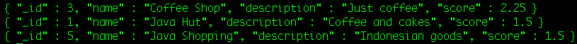 > db.stores.find( { $text: { $search: "java shop -coffee" } } )
