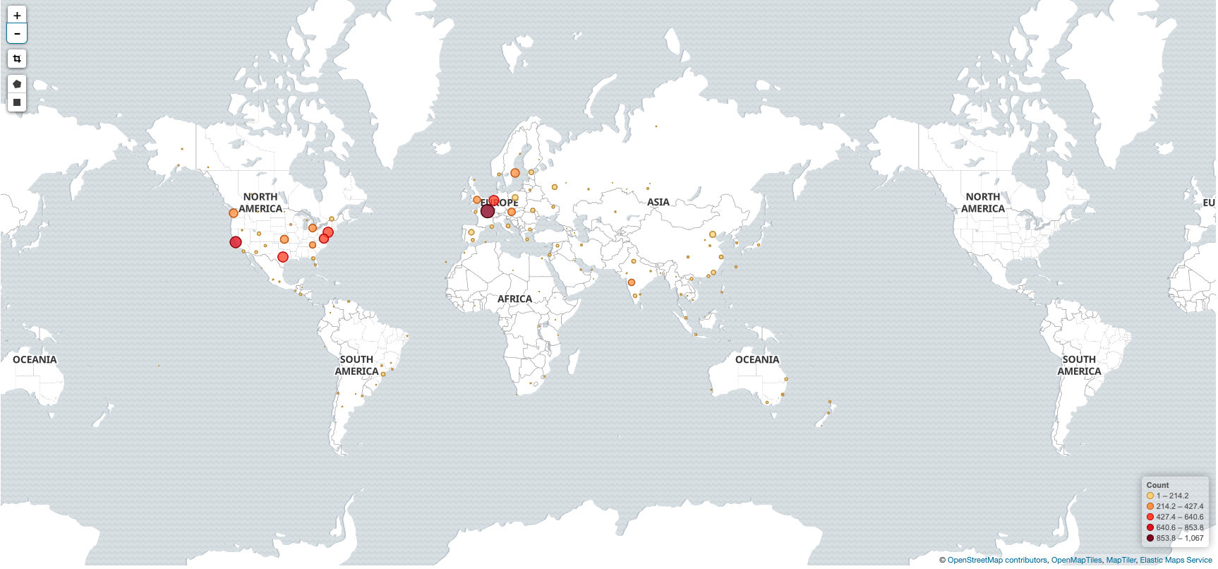 추후 키바나에서 이러한 지형집계로 시각화를 할 수 있다.