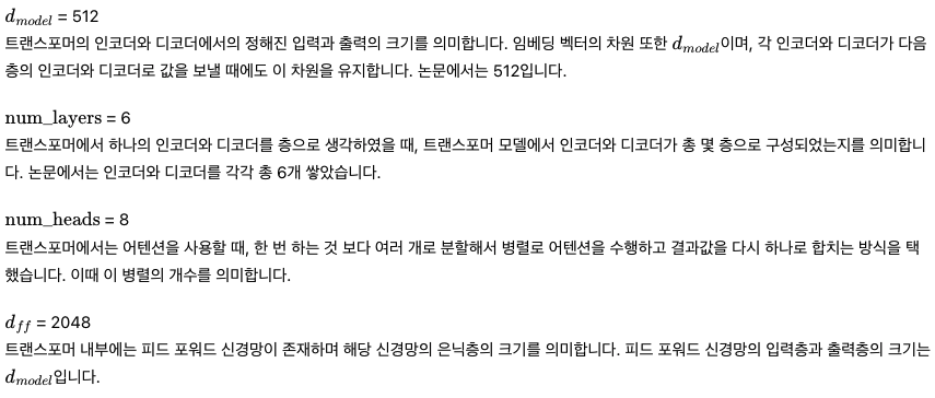 트랜스포머(Transformer)의 주요 하이퍼파라미터