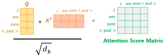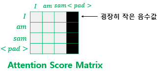사실 패딩을 위한 토큰은 실질적인 의미를 담은 단어는 아니고, 시퀀스의 길이를 맞춰주기 위한 더미 토큰이기 때문에 트랜스포머에서는 Key의 경우 패딩 토큰이 존재한다면 유사도를 구하지 않도록 마스킹을 해준다.