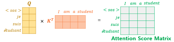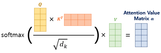 이제 각 단어의 어텐션 값은 아래 수식대로 계산하면 나오게 된다.