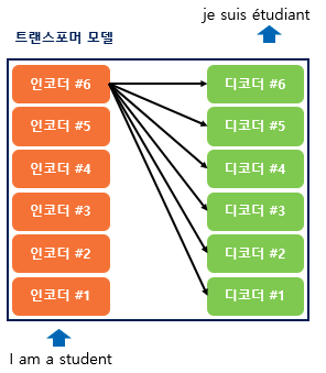 위 그림은 각 인코더, 디코더가 6개의 층으로 쌓여있는 구조이다.