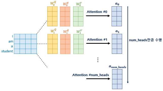 그 외에 멀티 헤드 어텐션을 수행하는 과정은 다른 어텐션과 동일하다.
