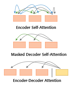 위 그림은 세가지 어텐션이 각각 어디에서 이루어지는지를 보여주는 그림이다.