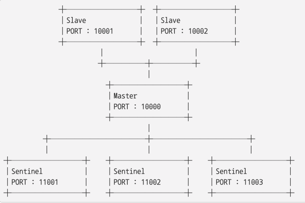 그리고 Sentinel도 동일하게 3개의 노드를 띄웁니다(3개의 의미가 있음). 이런 구성에서 Sentinel은 마스터를 지속적으로