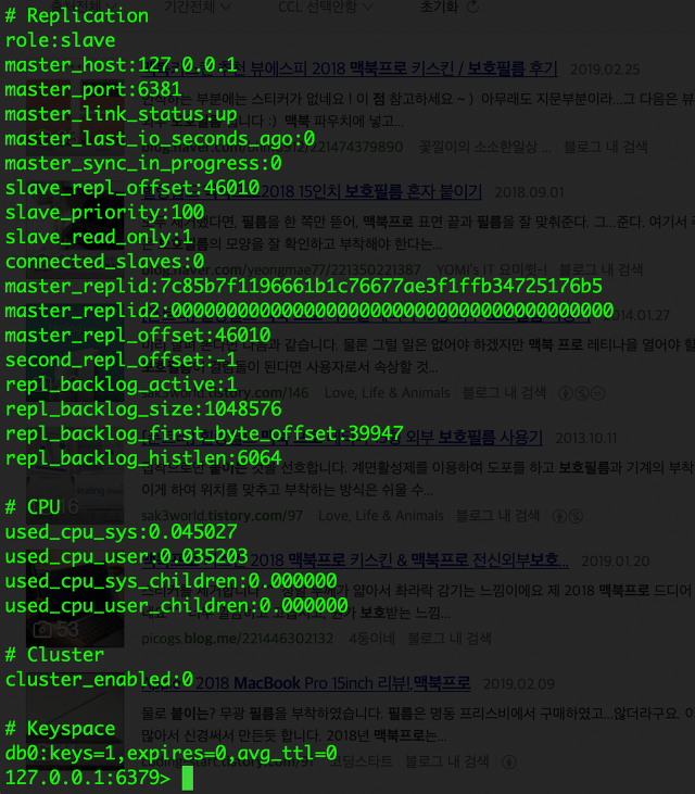 기존에 마스터였던 6379는 슬래이브로, 기존에 슬래이브였던 6381이 마스터로 선출되었습니다.