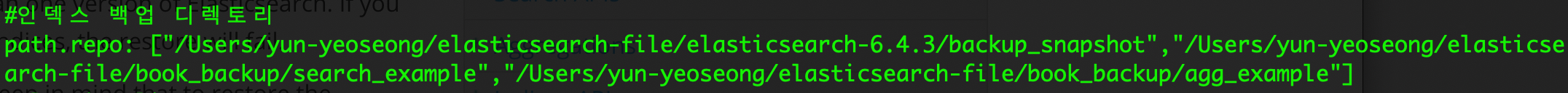 엘라스틱서치가 물리적인 백업용 디렉토리를 인식할 수 있도록 elasticsearch.yml 파일에 설정해준다.