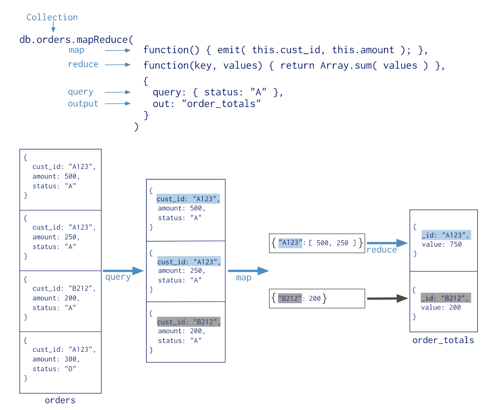 > db.collection.mapReduce(mapFunction, reduceFunction, {out: "collection"} ); |