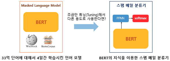 BERT는 트랜스포머를 이용하여 구현되었으며, 위키피디아와 BooksCorpus와 같은 레이블이 없는 텍스트 데이터로 사전 훈련된 언어 모델이다. BERT는 이미 기 학습된 사전 훈련 모델에 레이블이 있는 레이어 층을 하나 쌓아서 훈련해 파이미터를 재조정하여 다른 작업(task)에서도 좋은 성능을 낼 수 있다. 이러한 다른 작업을 위해 레이어를 쌓은 후 훈련하여 파라미터를 재 조정하는 과정을 파인튜닝(fine-tuning)이라고한다.